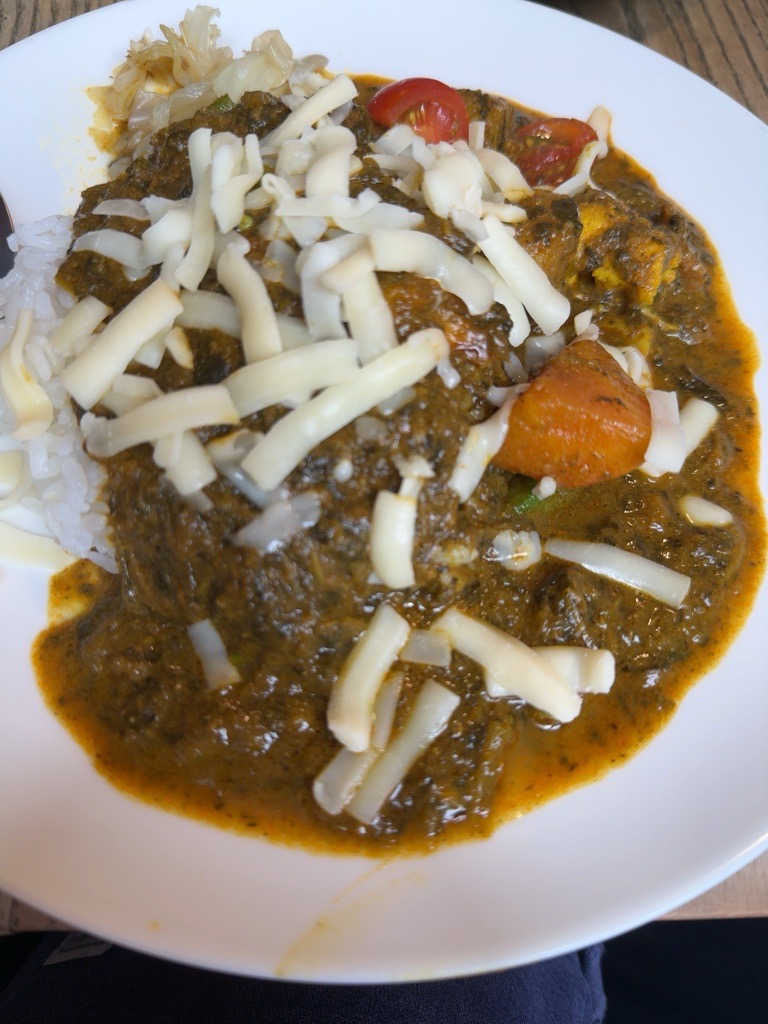 スパイスチャージにぴったりのチキンカレーや、チーズののったほうれん草のカレーなどを注文。